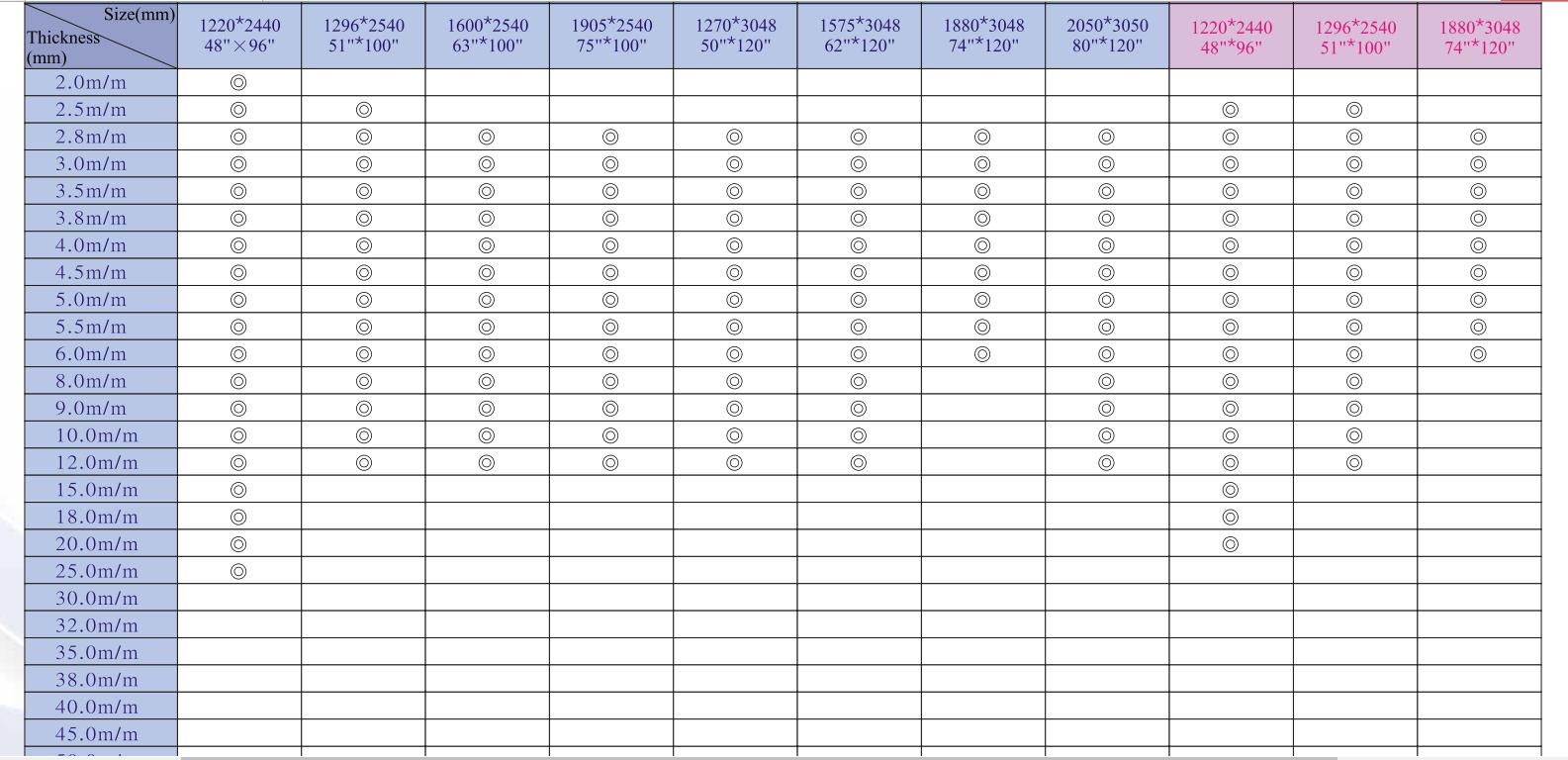 * Ghi chú: - Khổ tiêu chuẩn 1220 x 2440 & Độ dày 2 - 50mm